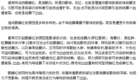 有人一旦发现孩子眼睛发红,就怀疑孩子是否患了“红眼病”,其实眼睛红只是一种症状,红眼病常常眼睛红,但眼睛红不一定就是患了红眼病。