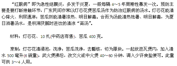 眼睛如果出现了红眼病的话,看东西也会受到一定的影响,记得一定要治疗。红眼病这样的眼病是一种非常严重的眼部疾病,当红眼病疾病出现的时候,对于人们的视力是会产生一定影响,甚至也会导致患者出现人们歧视的现象,那么除了去医院进行治疗外,还有其他方法吗?下面小编给大家介绍一种食疗治红眼病的办法。
