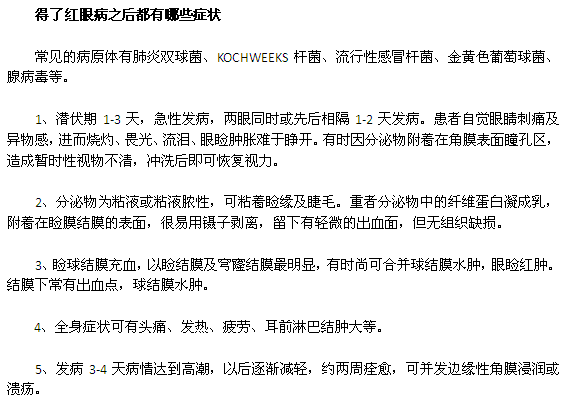 文章中小编对于红眼病的一些症状,给了一些介绍,了解完这些内容以后,大家对红眼病也有了深刻的认识,红眼病是一种细菌引起的炎症疾病,我们在生活中也要积极的进行预防,这样对我们的健康才能带来非常大的保障。