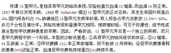 甲亢在日常生活中是难免会有发生的,同样甲亢也可以分为不同的种类,下面小编就给大家介绍下T3型甲亢。