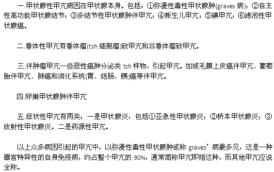 甲状腺功能亢进症,简称甲亢,系指有多种病因导致甲状腺功能增强,分泌甲状腺激素过多所致的临床综合征。甲亢的病因有多种。甲亢按病因可分为以下几类: