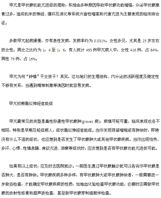 您知道吗?甲亢一般钟情于年轻女性,想知道这是怎么一回事吗?相信您看了这篇有关甲亢的文章,您就了解了。