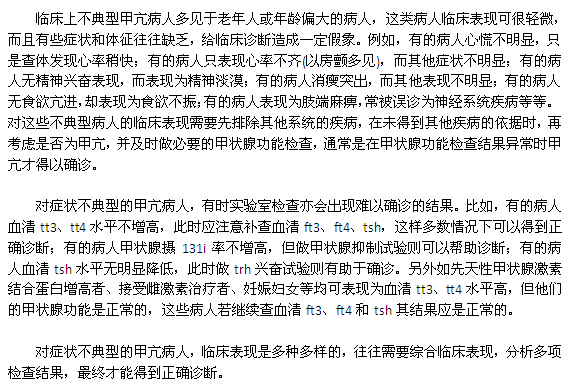 典型的甲亢从临床表现和实验室检查结果不难作出诊断,但是不典型甲亢无论从临床表现还是从实验室检查结果来看,都给正确诊断带来一定困难。那么如何识别不典型甲亢呢?下面小编带您了解下。