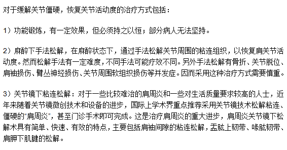 很多肩周炎患者术后都要进行恢复关节活动,并且具有明显疗效。因而关节镜下松解术对于保守治疗无效的肩周炎病例,日常性恢复关节活动是一种良好的治疗手段,对于术后患者恢复健康必不可少。