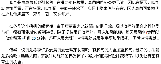 让人瘙痒难耐的脚气,在冬季似乎风平浪静了,很多人于是对它不予理睬了,可是大家一定要知道,冬季恰恰是可以把脚气消灭的最佳机会。那么到底如何彻底告脚气呢?相信您看了这篇文章,您就了解了。