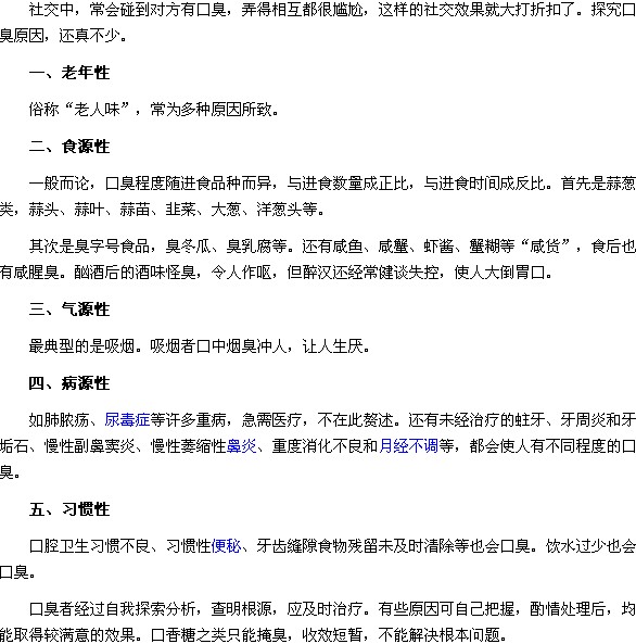 以上就是导致口臭的五大因素的相关内容,相信大家对此已经有所了解了,如患有口臭一定要查明根源,及时治疗,希望上述文章能够对大家有帮助。