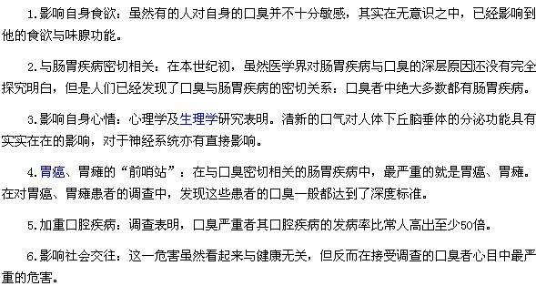 口臭对人身体和生活影响是什么?相信通过上面文章的介绍,相信您对此已经有了一定的了解了。如果您发现自己有口臭的情况,请及时到医院进行诊断治疗,避免延误病情。