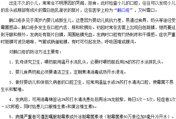 很多人都想了解对新生儿患上口疮的主要防治方法,为此,医学教育网编辑特别整理了这篇关于对新生儿患上口疮的主要防治方法的文章,具体如下: