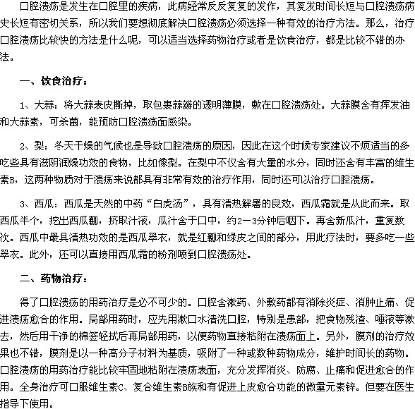 以上就是关于“能够快速治疗口腔溃疡的药物治疗与饮食方法”内容的介绍,相信大家已经有所了解。冬季人们比较容易上火,除了对口腔溃疡采取相对的治疗以为,在日常生活中也要在饮食方面注意口腔溃疡的发生。