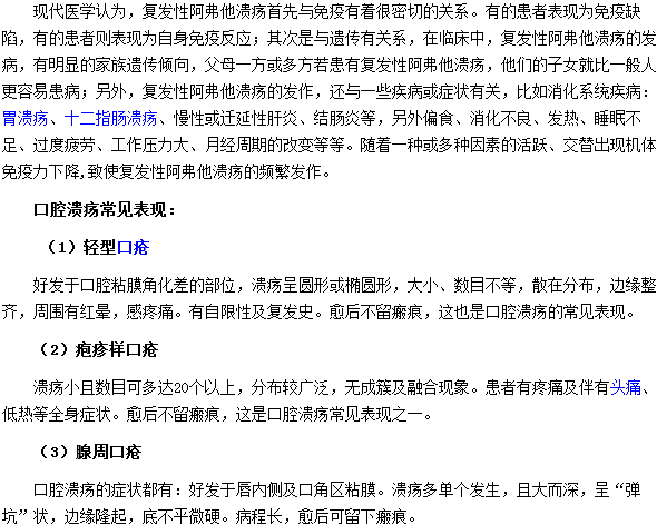 相信很多人都想知道患上口腔溃疡会有哪些常见的症状表现?医学教育网编辑为您搜集整理了相关信息,供您参考。