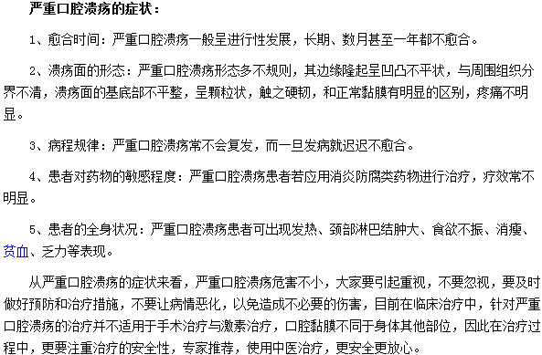 口腔溃疡我们都知道,就是口腔内出现疼痛严重的坑状溃疡,那么严重口腔溃疡的症状有哪些呢?医学教育网小编就为大家解答如下: