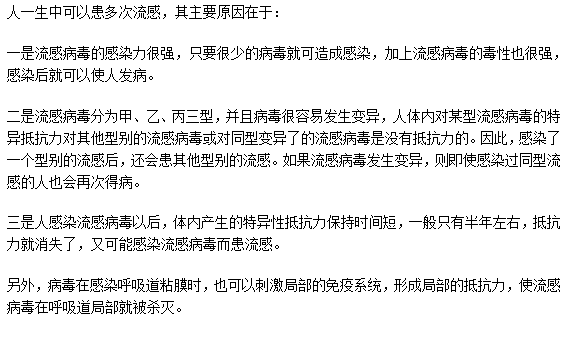 一个人的一生中可反复得流行感冒,以上就是医学教育网编辑为你整理了流感反复发作的主要原因,希望对大家有帮助,预防流感疾病,早日治疗流感疾病是最关键的一步。