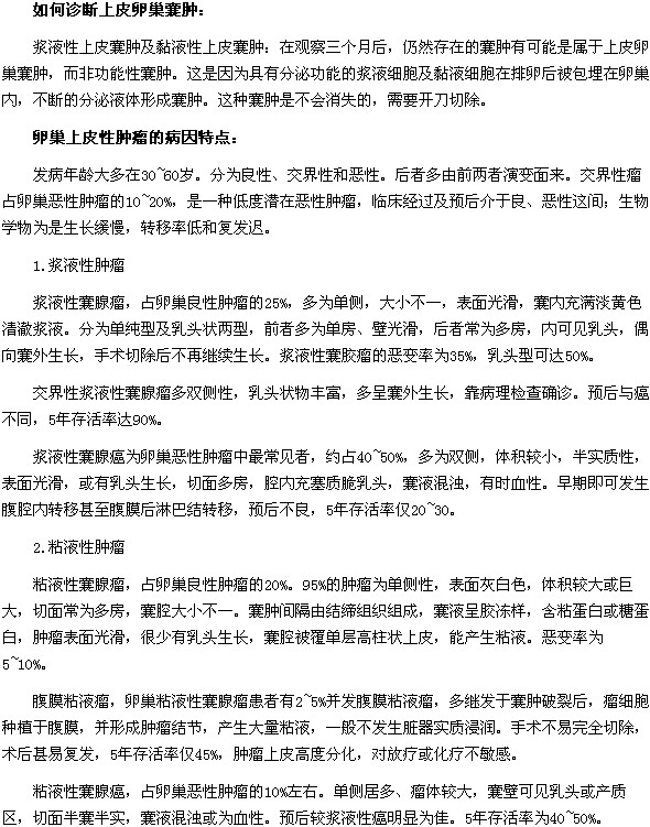 上皮卵巢囊肿如何诊断?有何病因特点?相信很多人都想知道,下面请大家仔细阅读医学教育网编辑专门为您整理的“上皮卵巢囊肿如何诊断?有何病因特点?”这篇文章吧。