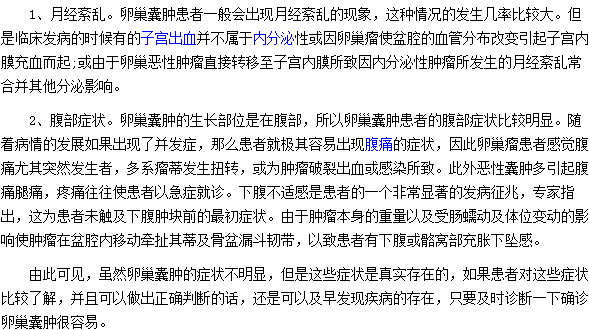 以上就是“卵巢囊肿的症状及简单的判断方法”的内容,相信大家在看完上面的文章以后都已经了解了,医学教育网小编提醒女性朋友们,就算是身体非常健康的女性也应该多进行一下了解。因为卵巢囊肿的发病率是相当高的,而且它的发病常常没有征兆,易造成患者的忽视。