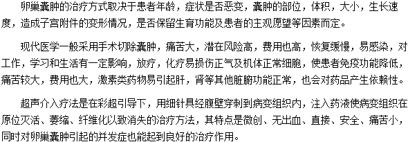 患上卵巢囊肿如何选择最佳治疗方法?相信这是很多卵巢囊肿患者都很关心的问题,下面医学教育网小编为帮助大家了解相关知识,特整理了患上卵巢囊肿如何选择最佳治疗方法的文章,供大家参考。