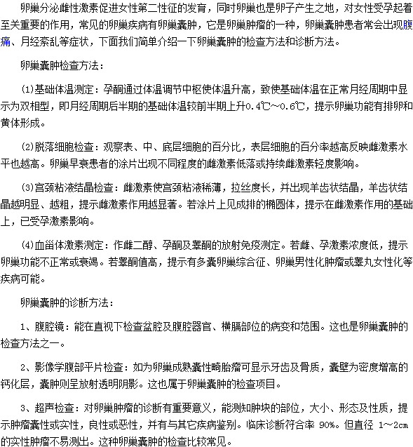 关于卵巢囊肿的四种检查方法及三种诊断方法是什么的问题,相信很多人都想了解,下面医学教育网小编特为大家介绍如下: