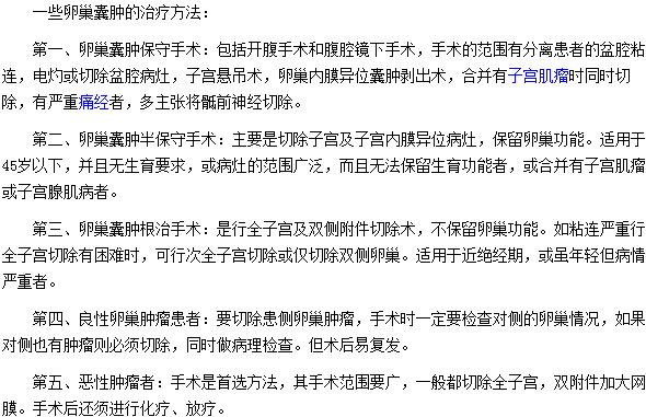 治疗卵巢囊肿的方法就为您介绍到这里,卵巢囊肿是一种妇科病,对女性健康影响严重,可能会影响生命安全。因此卵巢囊肿发生是一定要及早进行治疗,以免错失治疗的良机。