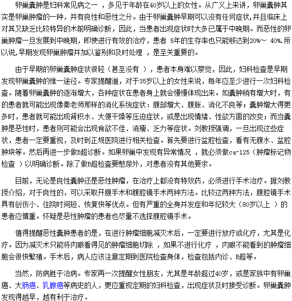 关于年龄超40的女性切不可对卵巢囊肿掉以轻心的内容,很多人都想知道,医学教育网编辑经过多方搜寻,现将年龄超40的女性切不可对卵巢囊肿掉以轻心的内容分享给大家。