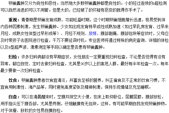 很多人都想了解预防卵巢囊肿的四大方法,为此,医学教育网编辑特别整理了这篇关于预防卵巢囊肿的四大方法的文章,具体如下: