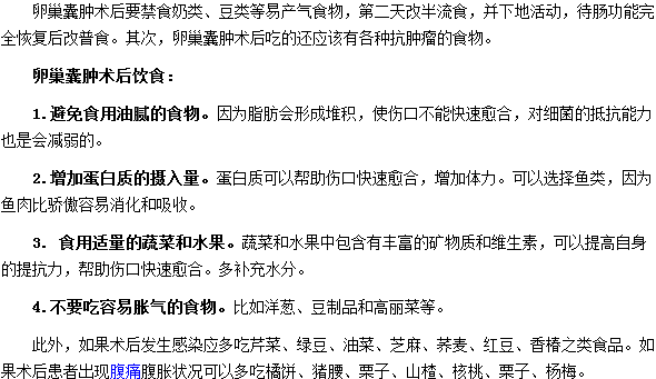 卵巢囊肿术后的饮食是非常重要的,手术后的女性朋友一定要知道卵巢囊肿术后吃什么好,吃什么恢复的快,吃什么最有营养?那么,卵巢囊肿术后的饮食方法及禁忌是什么呢?下面医学教育网小编就为家整理了具体文章,供大家参考。