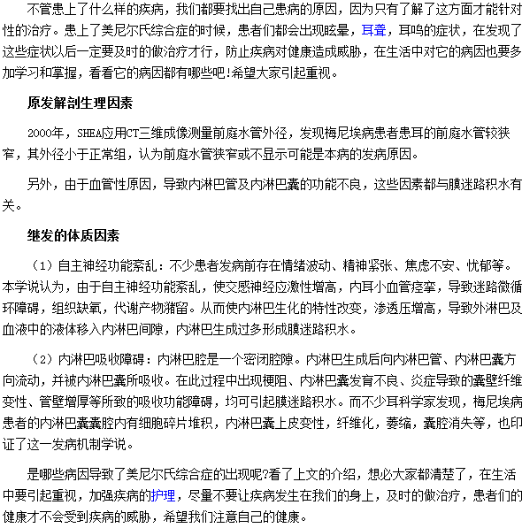 您想知道哪些病因导致了美尼尔氏综合症的出现吗?相信您看了这篇有关哪些病因导致了美尼尔氏综合症出现的文章,您就了解了。
