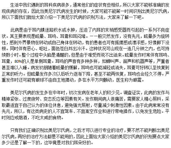 相信很多人都想知道怎样识别美尼尔氏病,医学教育网编辑为您搜集整理了怎样识别美尼尔氏病的相关文章,供您参考学习。