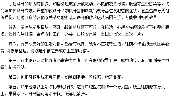 通过上文对“人们会出现磨牙情况的原因是什么”内容的介绍,相信大家对出现磨牙情况的原因都已经了解了。所以,在生活中,磨牙患者要找到自己磨牙的病因,然后才能够有效的治疗磨牙。