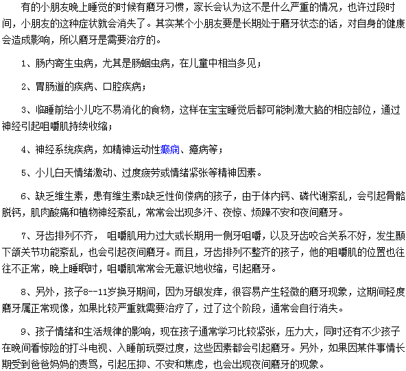 为什么小朋友会有晚上睡觉磨牙的现象?相信很多人都想知道,那么为什么小朋友会有晚上睡觉磨牙的现象呢?相信大家看了下面这篇文章就会明白了。