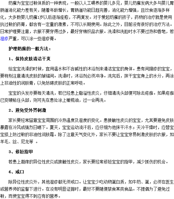 大家在了解了以上小编介绍的“护理小儿奶癣的方法一般有哪些?”这篇文章后,相信对护理小儿奶癣的方法已经了解了,希望能够对大家有所帮助,更多内容请继续关注医学教育网。
