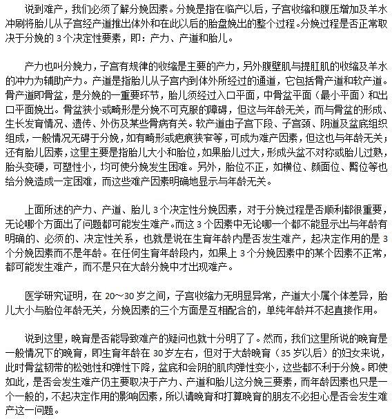 以上就是小编为您整理的有关晚婚晚育是否会导致难产的文章,相信大家在经过对上文的阅读后应该对于晚婚晚育是否会导致难产有了一定的了解,希望可以对广大女性有帮助。