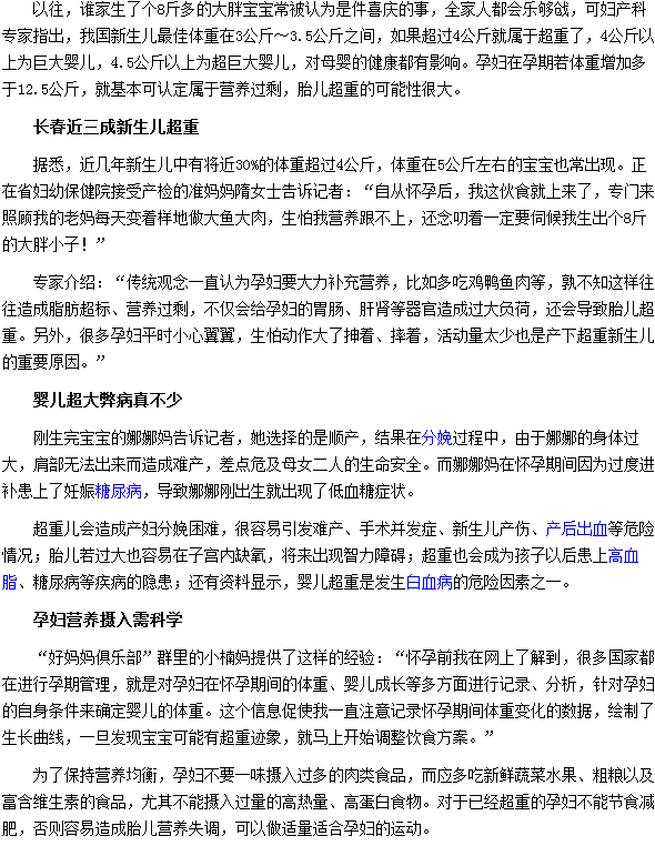 上述胎儿超重可能会导致难产的情况发生的内容,相信大家都了解了,孕妈妈们在孕期一定要科学合理的摄入营养,保持营养均衡,适量运动,这样才能避免因为胎儿超重导致难产的情况。