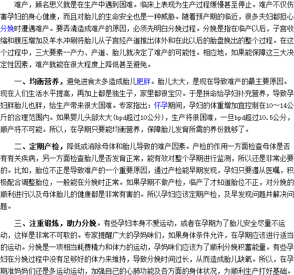 如果您担心您或家人朋友会出现难产的情况,相信这篇关于避免难产孕妇在孕期应该遵守三大原则的文章会对您有帮助,具体内容由医学教育网小编为大家整理如下: