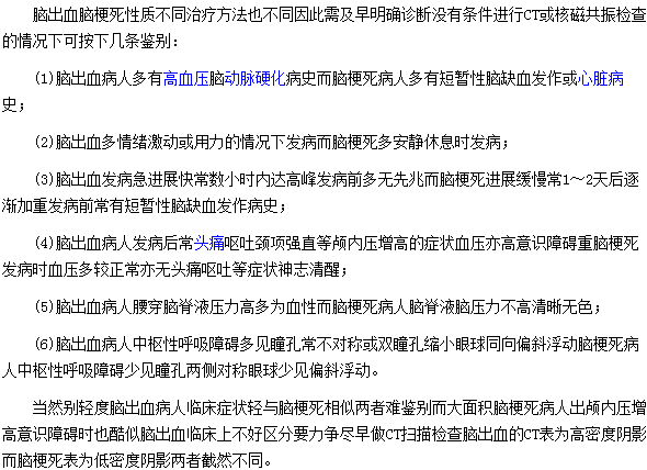以上是医学教育网小编为大家搜集整理的全部内容,通过上面的介绍,相信大家已经对脑出血和脑梗死的鉴别有了更多的了解。大家可以将这篇文章分享给周围的朋友,引起更多朋友的关注!