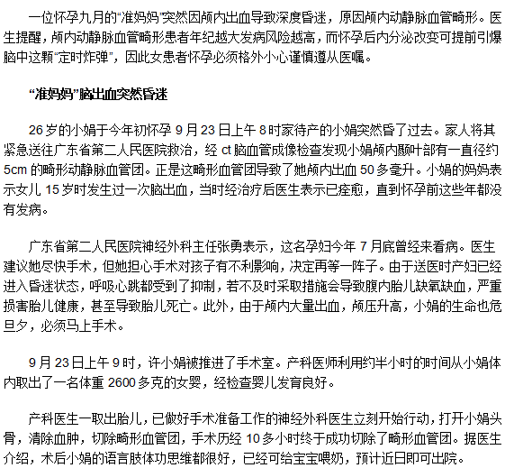 以上就是怀孕可增加脑出血风险,相信大家都有所了解了。想要了解更多关于脑出血的疾病知识请多多关注医学教育网疾病栏目!