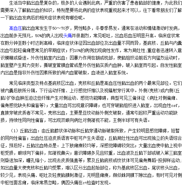 相信很多人会对脑出血患者发病后的主要临床症状有哪些的问题比较想了解,为此,医学教育网编辑特地为您准备了这篇“脑出血患者发病后的主要临床症状有哪些?”的文章,希望对您有帮助。