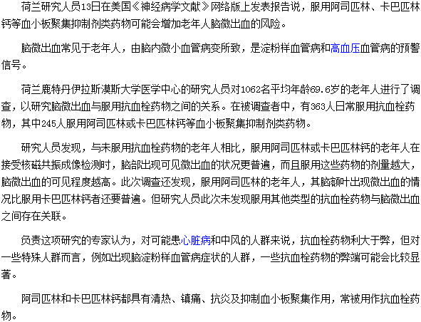 为什么小板聚集抑制剂类药物会增加老年人脑出血的风险?相信很多人都不清楚,那么为什么小板聚集抑制剂类药物会增加老年人脑出血的风险呢?相信大家看了下面这篇文章就会明白了。