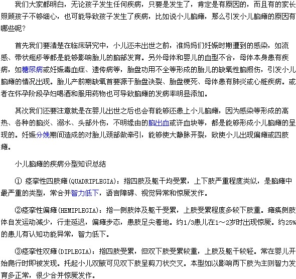 小儿脑瘫的三种疾病分型是什么?相信很多人对此对非常想要了解,下面医学教育网小编为帮助大家了解相关知识,特整理了小儿脑瘫的三种疾病分型知识总结这篇文章,供大家参考阅读。
