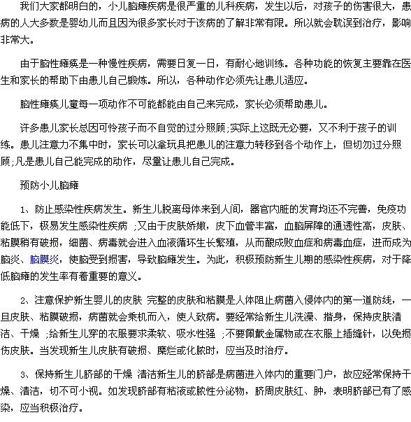 大家在阅读了小儿脑瘫应该如何治疗及如何预防小儿脑瘫的内容后,相信对此病都已经有所了解了,患上该病最好就是在发现的早期进行治疗,这样能够把伤害降到最低,同时医学教育网小编也希望广大的家长朋友做好足够的预防措施。
