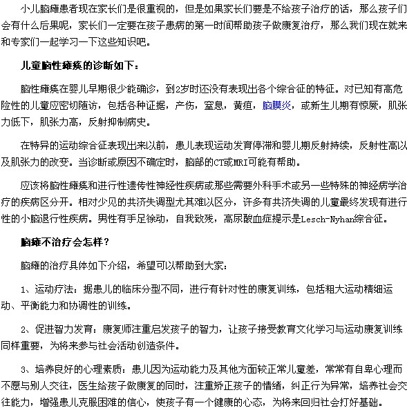 上面我们介绍的是小儿脑瘫最早什么时候能够确诊的内容,相信家长朋友们已经有所了解,希望大家仔细阅读,只有家长们掌握了这些才能帮助孩子健康成长,最后祝愿患者早日康复。