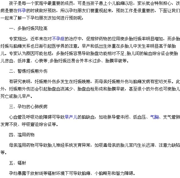 以上内容就是有关于准妈妈们必须知道的预防出生儿脑瘫的措施的相关知识介绍,医学教育网小编提醒准妈妈们一定要重视起来,脑瘫会给孩子带来很大的危害,在生活中一定要小心谨慎一些,做好预防工作,这样才能减少疾病发生。