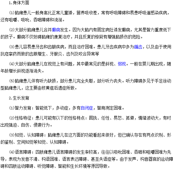 脑瘫现在是一种比较常见的,影响力也比较大的疾病,如果脑瘫患者没有得到及时的治疗,脑瘫会对身体方面及生长发育的有不小的影响,那么,脑瘫对身体方面及生长发育的影响是什么呢?下面医学教育网小编特为大家整理如下: