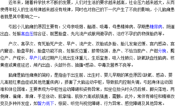 引起小儿脑瘫的原因主要有哪些?相信现在很多的家长朋友都很关心这个问题,为帮助大家,医学教育网小编整理了引起小儿脑瘫的原因的具体内容如下: