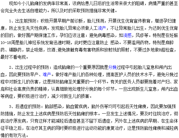 关于怎样预防小儿脑瘫的效果更好,相信很多人都比较感兴趣,医学教育网编辑特撰文如下: