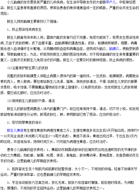 新生儿预防脑瘫主要做好哪些措施?相信很多家长朋友都非常想要了解,为帮助大家,医学教育网小编特整理了新生儿预防脑瘫主要做好哪些措施的这篇文章,供大家参考。
