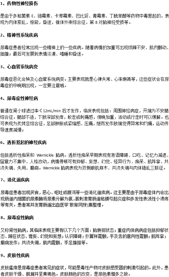 尿毒症是肾脏疾病的一种,相信它的严重性大家都心知肚明,但不知道大家对尿毒症容易引起的并发症又了解多少呢?医学教育网搜集了一些尿毒症容易引起的并发症整理如下,希望能为相关人士提供一些帮助,请大家参考!
