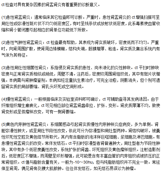 Ct是利用核素显影剂在脏器内的分布特性,通过成像设备在体外显示脏器的形态和结构变化。ct具有无损伤性的优点,主要用于区别x线不能分辨的软组织之间的微小差别。医学教育网编辑为你介绍检查对肾盂肾炎的诊断意义。