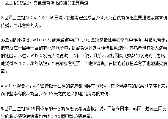 以上就是医学教育网为您整理的关于禽流感的传播途径的文章,特别提醒您,如果您身边出现了疑似禽流感的病例,请及时就医,以防病情恶化,威胁您的健康。