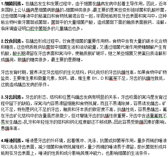 儿童患上龋齿的常见发病原因是什么,你知道吗?相信这是很多家长朋友都很关注的问题,下面医学教育网小编特为大家整理了“儿童患上龋齿的常见发病原因是什么”的相关内容,希望对大家有帮助。一般来说,儿童患上龋齿的常见发病原因主要包括四个方面:细菌、饮食、牙和唾液,四者相互关联,缺少一个方面都不能发生龋齿。