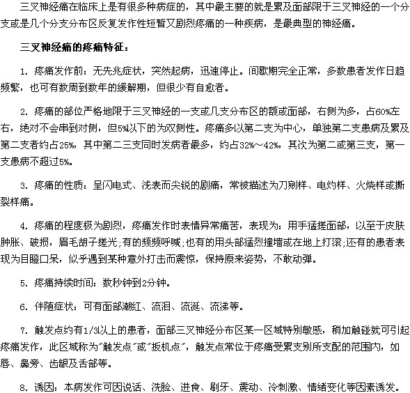 三叉神经痛有哪些疼痛特征?三叉神经痛的疼痛特征是什么?想要了解三叉神经痛的朋友们,一定想知道三叉神经痛有哪些疼痛特征?为了帮助大家了解相关信息,医学教育网小编特整理了具体内容如下: