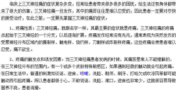 很多人都想了解三叉神经痛的症状都有哪些,为此,医学教育网编辑特别整理了这篇关于三叉神经痛的症状的文章,具体介绍如下: